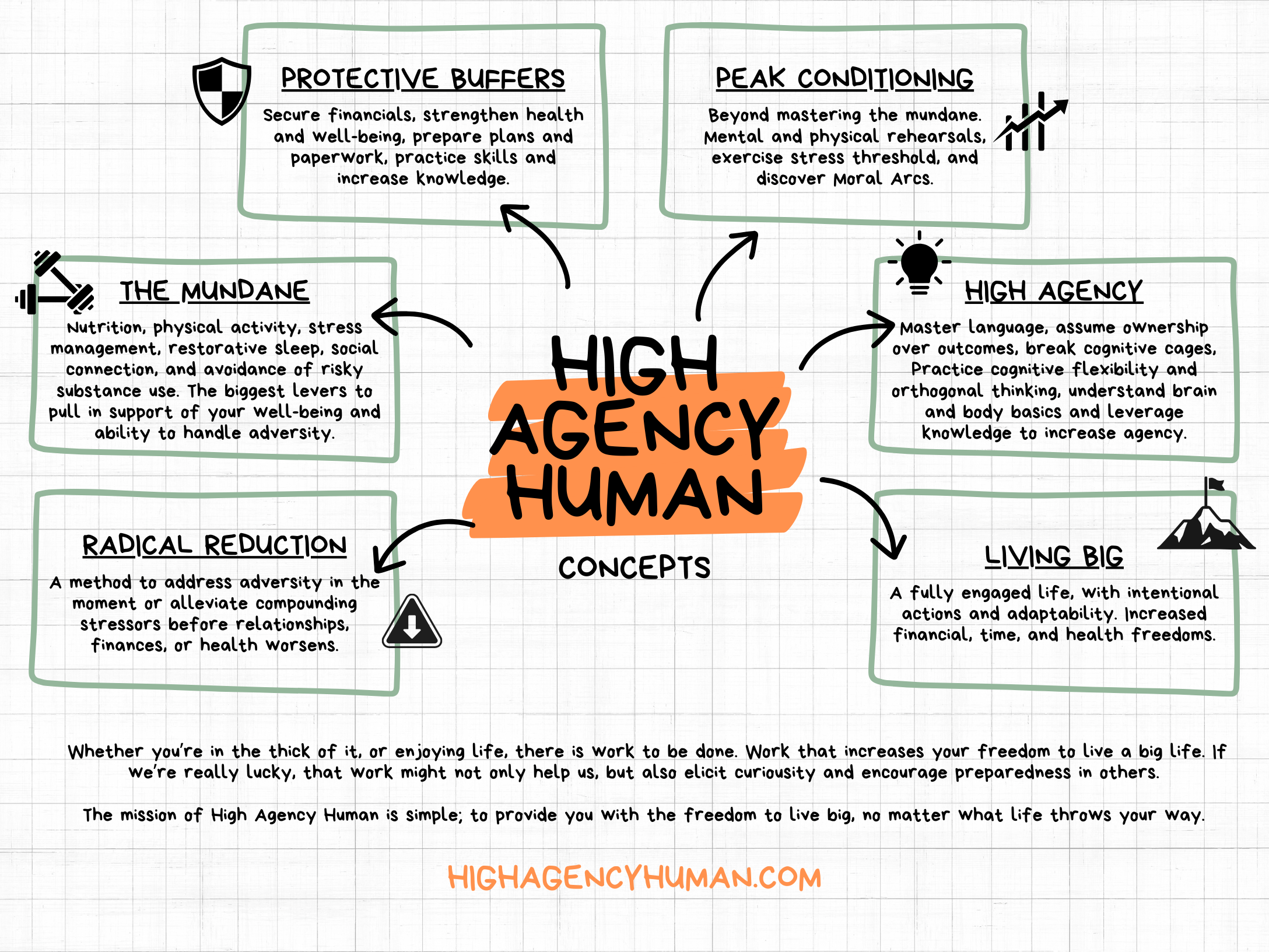 High Agency Human encourages individuals to embrace their inherent agency, navigate adversity with resilience, prioritize well-being, and proactively prepare for a future full of possibilities.